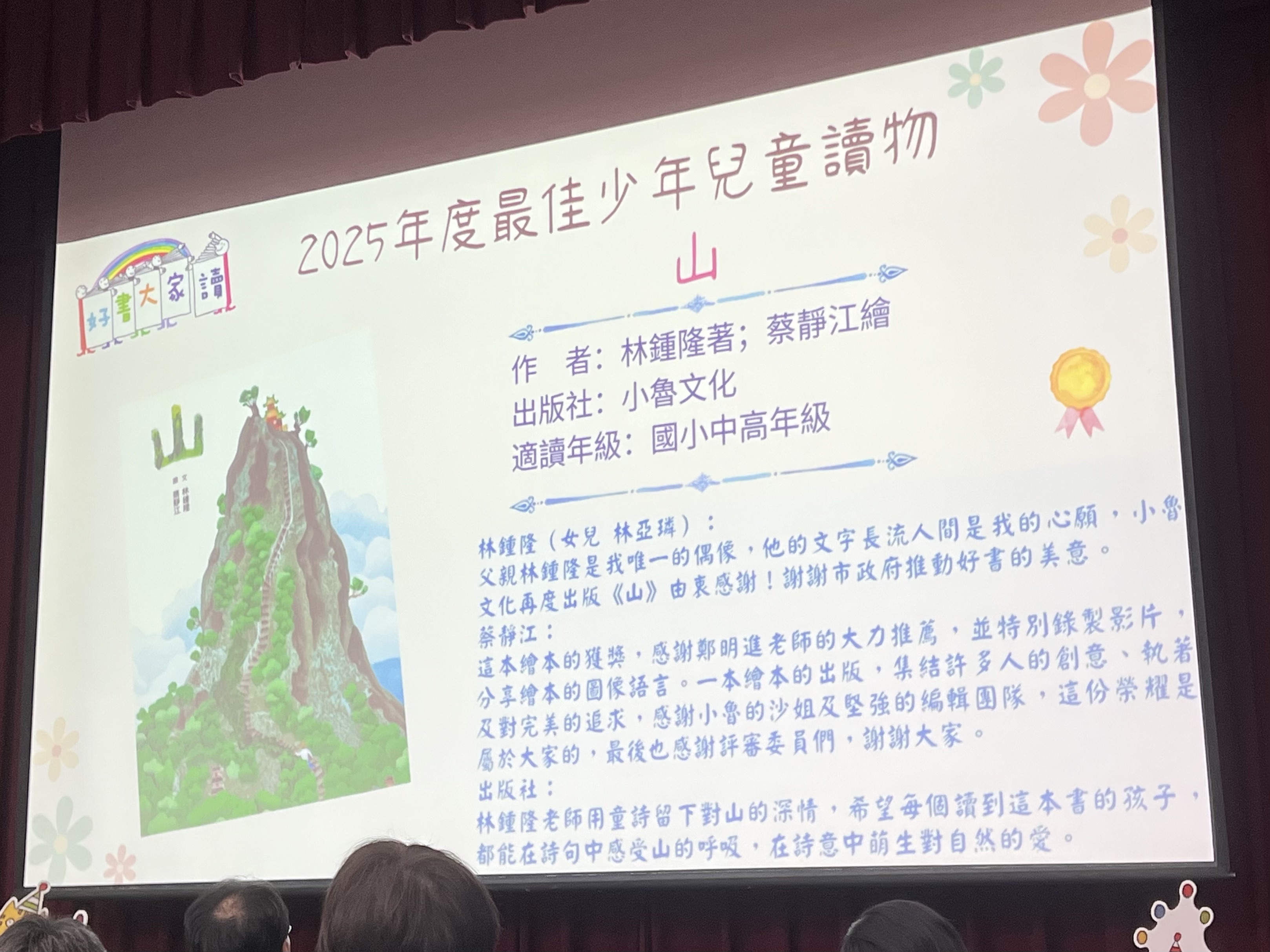 恭喜原創繪本《山》獲獎。