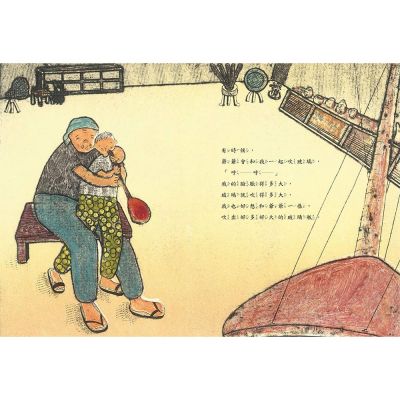 安安高興的跟著阿婆爬上枝頭,籃裡裝滿圓滾滾的小燈籠。