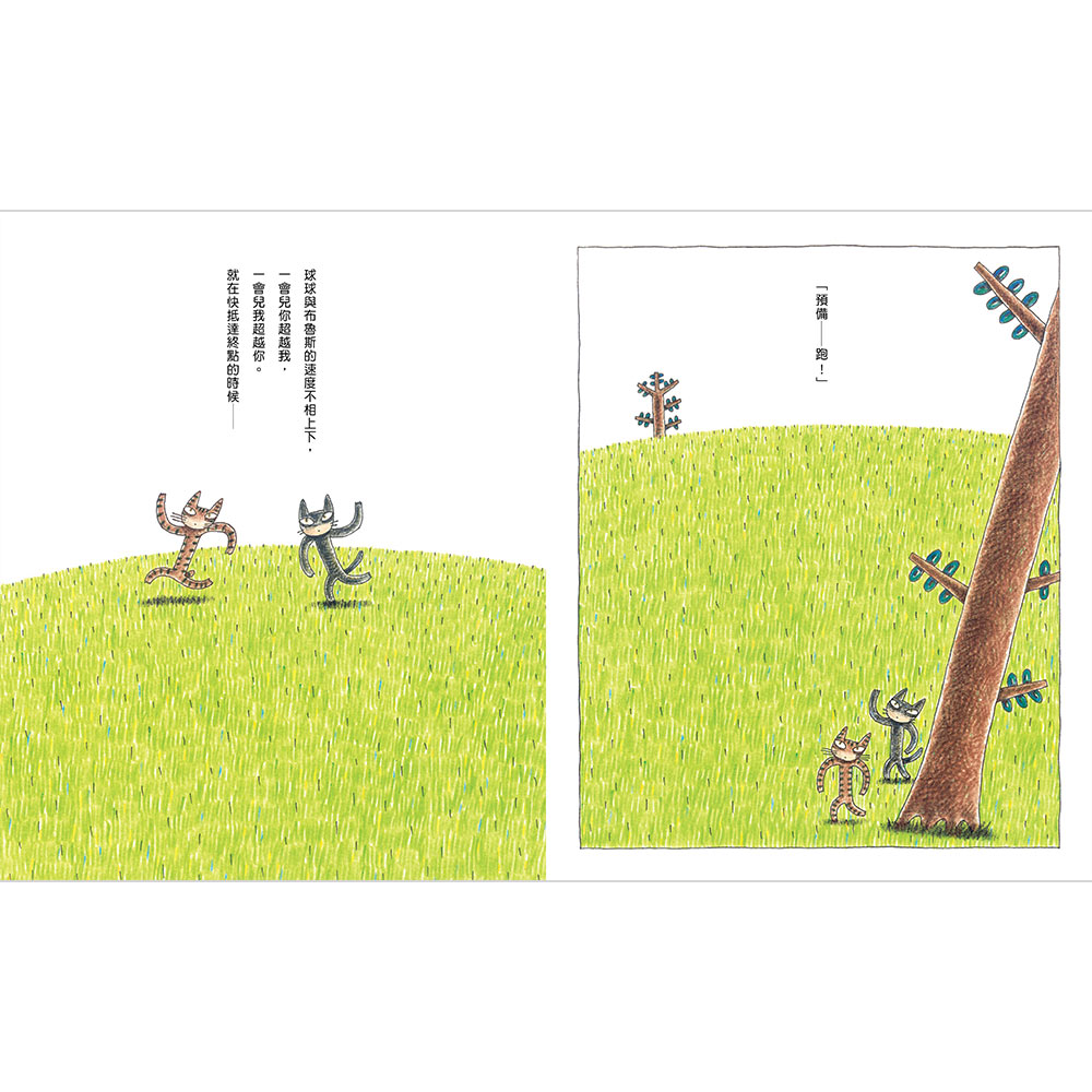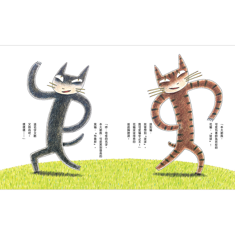 宮西達也說:「人心是非常有趣又美麗的!除了炫耀、不服輸的心態,溫柔、體諒、愛人的情感都在你我的心裡。」作者透過花貓球球與黑貓布魯斯由鬥嘴、較量到言好和解,再到互相喜歡的過程,描繪出令人會心一笑的友誼。藉由詼諧逗趣的角色、貼近生活經驗的口吻、主軸明顯的情節,道出「消弭偏見、跨越界線」的愛,百讀不厭。