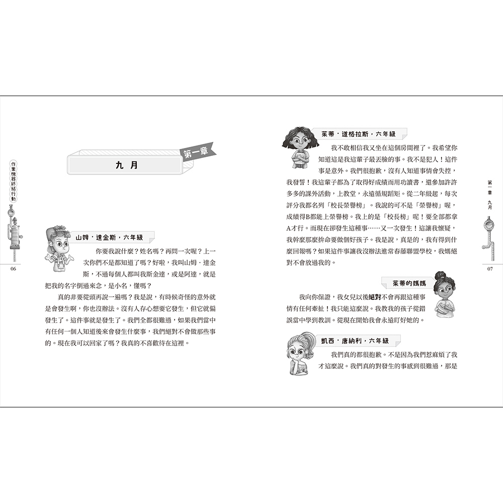 我不敢相信我又坐在這個房間裡了。我希望你知道這是我這輩子最丟臉的事。我不是犯人!這件事是意外。我們很抱歉,沒有人知道事情會失控,我發誓!我這輩子都為了取得好成績而用功讀書,還參加許許多多的課外活動,上教堂,永遠循規蹈矩。從二年級起,每次評分我都名列「校長榮譽榜」。我說的可不是「榮譽榜」喔,成績得B都能上榮譽榜。我上的是「校長榜」呢!要全部都拿A才行。而現在卻發生這種事……又一次發生!這讓我懷疑,我幹麼那麼拚命要做個好孩子。我是說,真是的,我有得到什麼回報嗎?如果這件事讓我沒辦法進常春藤聯盟學校,我媽絕對不會放過我的。