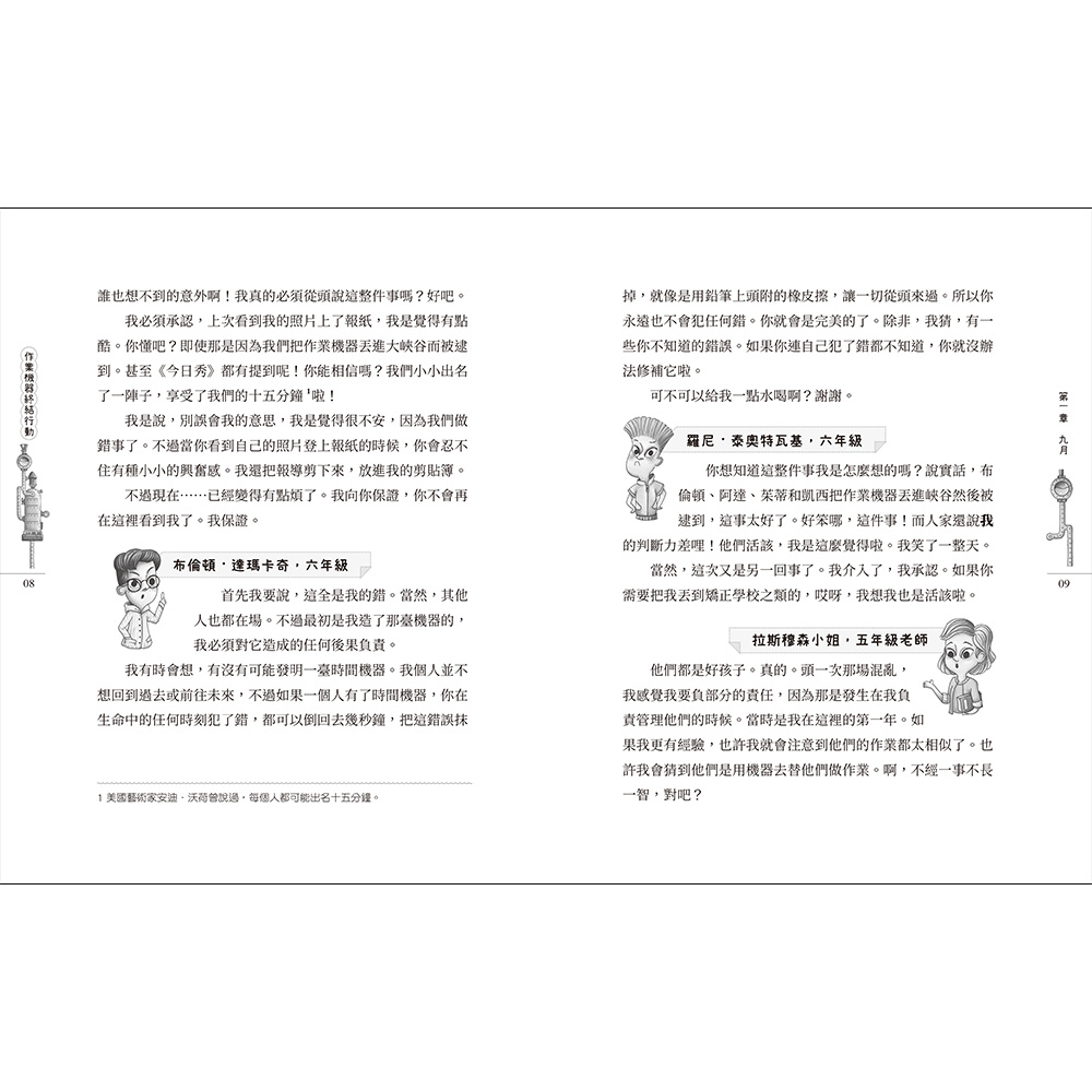 先回顧一下吧:就讀馬路那頭那間大峽谷學校的四個小鬼,造了臺可以幫他們自動寫作業的機器。們是聰明孩子,本性算好。後來,為了某個原因,他們又自己造了一臺投石器,把那整臺機器丟進了峽谷。這是我見過最最奇怪的事了。