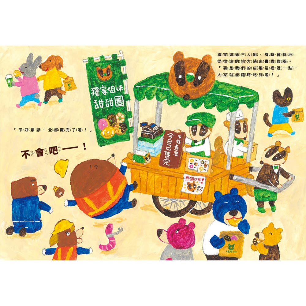 在開鑿隧道的過程中,鼴鼠建設公司與丸丸工業攜手合作,展現了克服困難的毅力和智慧,最終成功完成隧道工程,讓獾牌甜甜圈店得以在新址開張,不僅實現了居民們品嚐美味甜甜圈的願望,也讓小鎮變得更加便利與溫暖。從故事中能夠啟發孩子理解,努力完成一件事,不僅是任務的成功,更是為大家帶來幸福與快樂。