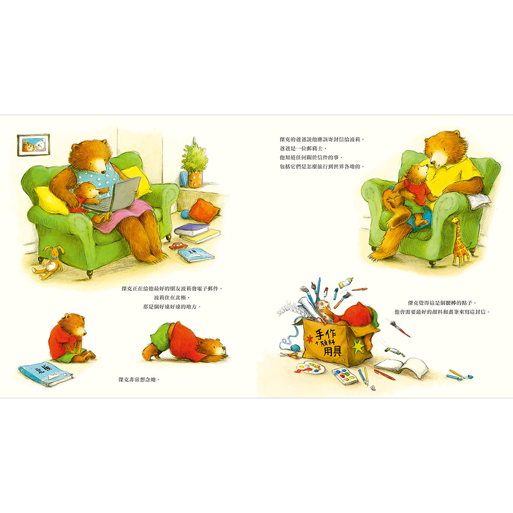 小熊傑克寫了一封信給他最好的朋友波莉。但波莉住在遙遠的北極,信要如何送到那兒呢?