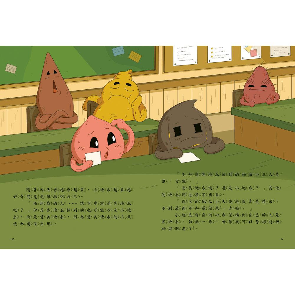 第二章加入「懸疑」的氛圍,小地瓜的小天使到底是誰呢?小地瓜該去當誰的小天使呢?跟他一起來完成三項任務吧!