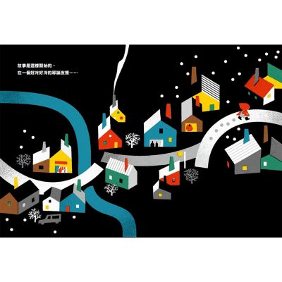 在雪花飄飛的耶誕夜裡,小女孩在前往小鎮採買的路上撿到了一隻大大的紅手套。