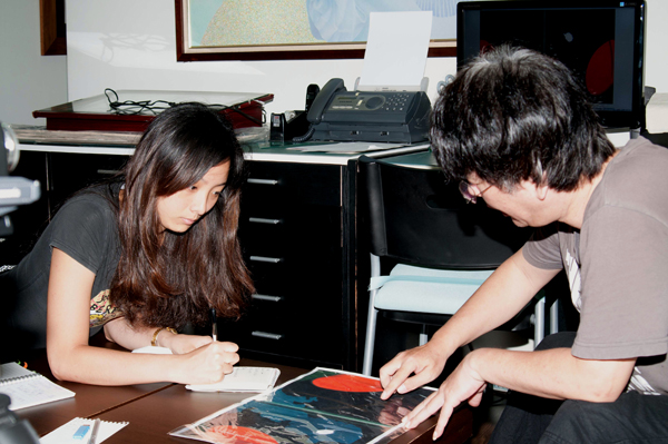 ▲小魯編輯們去拿畫稿時,仔細跟老師確認編輯中該注意的事情。還要考試找一找書中隱藏的小祕密。