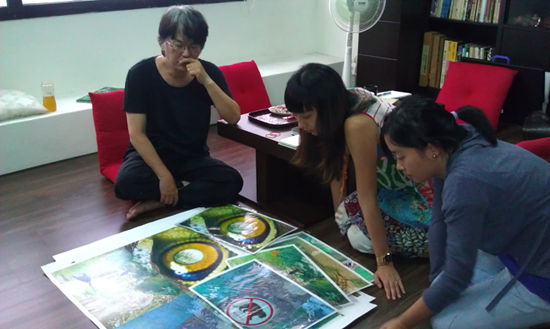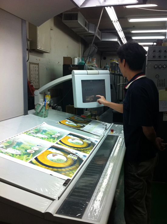 ▲請印刷廠試顏色後,帶著校稿、試色的打樣和老師討論顏色。