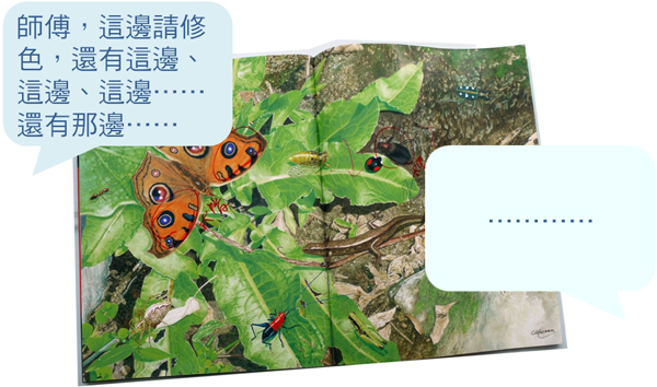 好的!那麼接下來我們要繼續看看小魯編輯們怎麼將《我們的森林》精美的畫稿編輯成書囉!拿到畫稿後我們先請印刷廠將畫稿掃描,用印刷機試試看印刷的顏色,是不是要用比較細緻的水晶網點?書中的十四種綠要不要用特別色來印刷?效果好嗎?決定印刷方式後美術編輯開始設計版面、封面,文字編輯也開始校對,並製作附錄、邀請導讀、推薦……諸多工程是怎麼進行的呢?且看我們精采的說明: