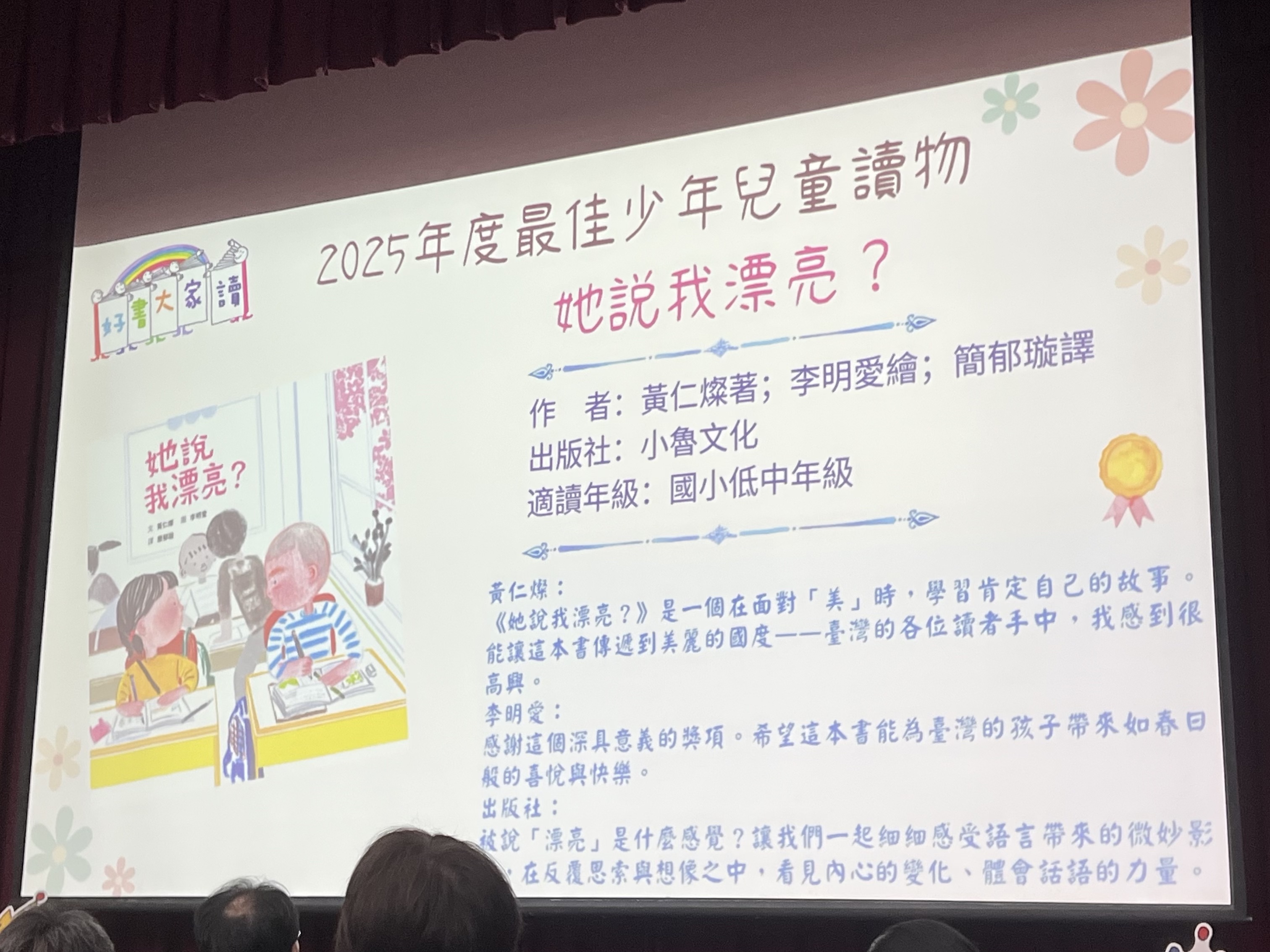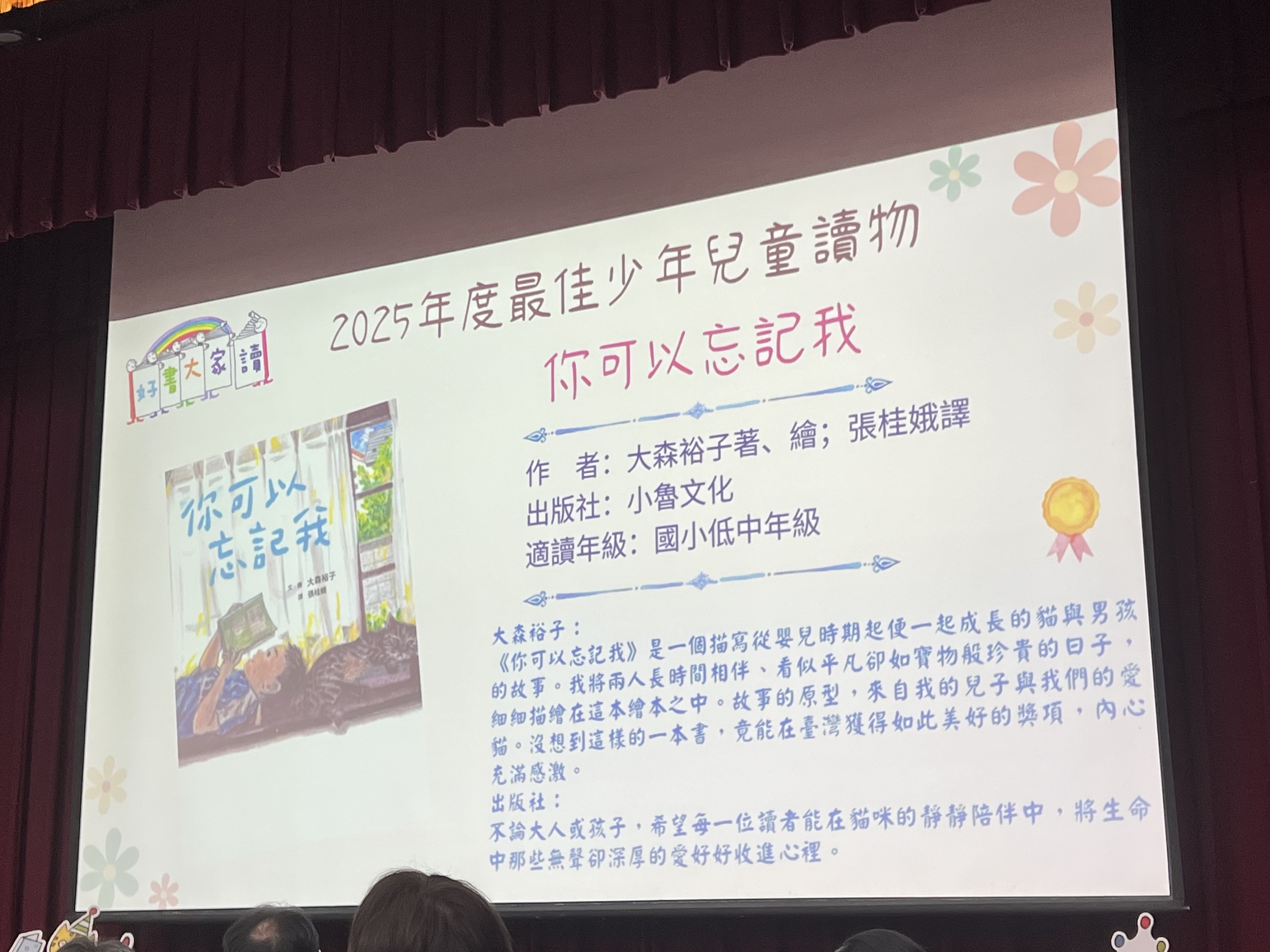 感謝這個深具意義的獎項。希望這本書能為臺灣的孩子帶來如春日般的喜悅與快樂。