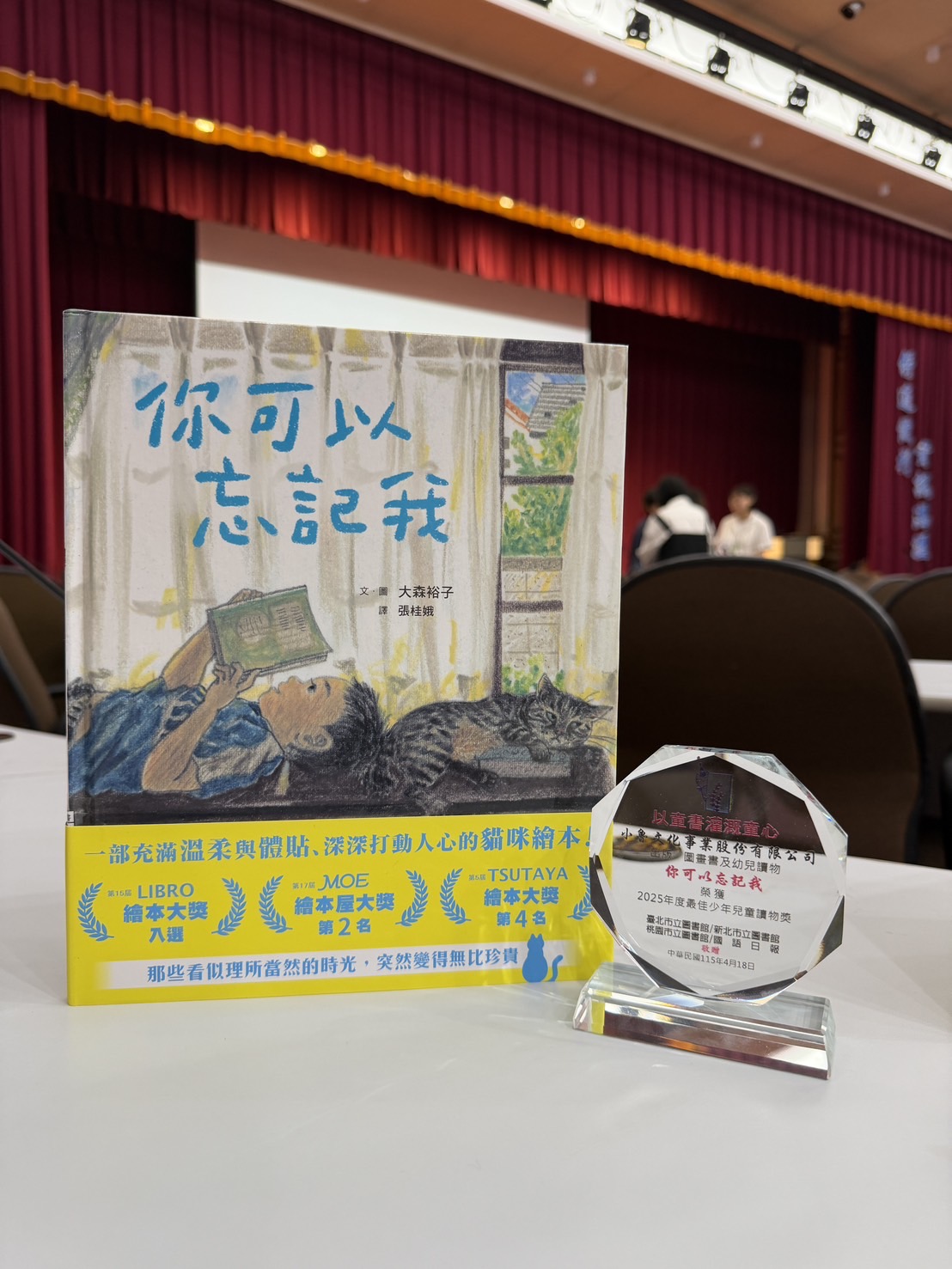 《你可以忘記我》是一個描寫從嬰兒時期起便一起成長的貓與男孩的故事。我將兩人長時間相伴、看似平凡卻如寶物般珍貴的日子,細細描繪在這本繪本之中。故事的原型,來自我的兒子與我們的愛貓。沒想到這樣的一本書,竟能在臺灣獲得如此美好的獎項,內心充滿感激。