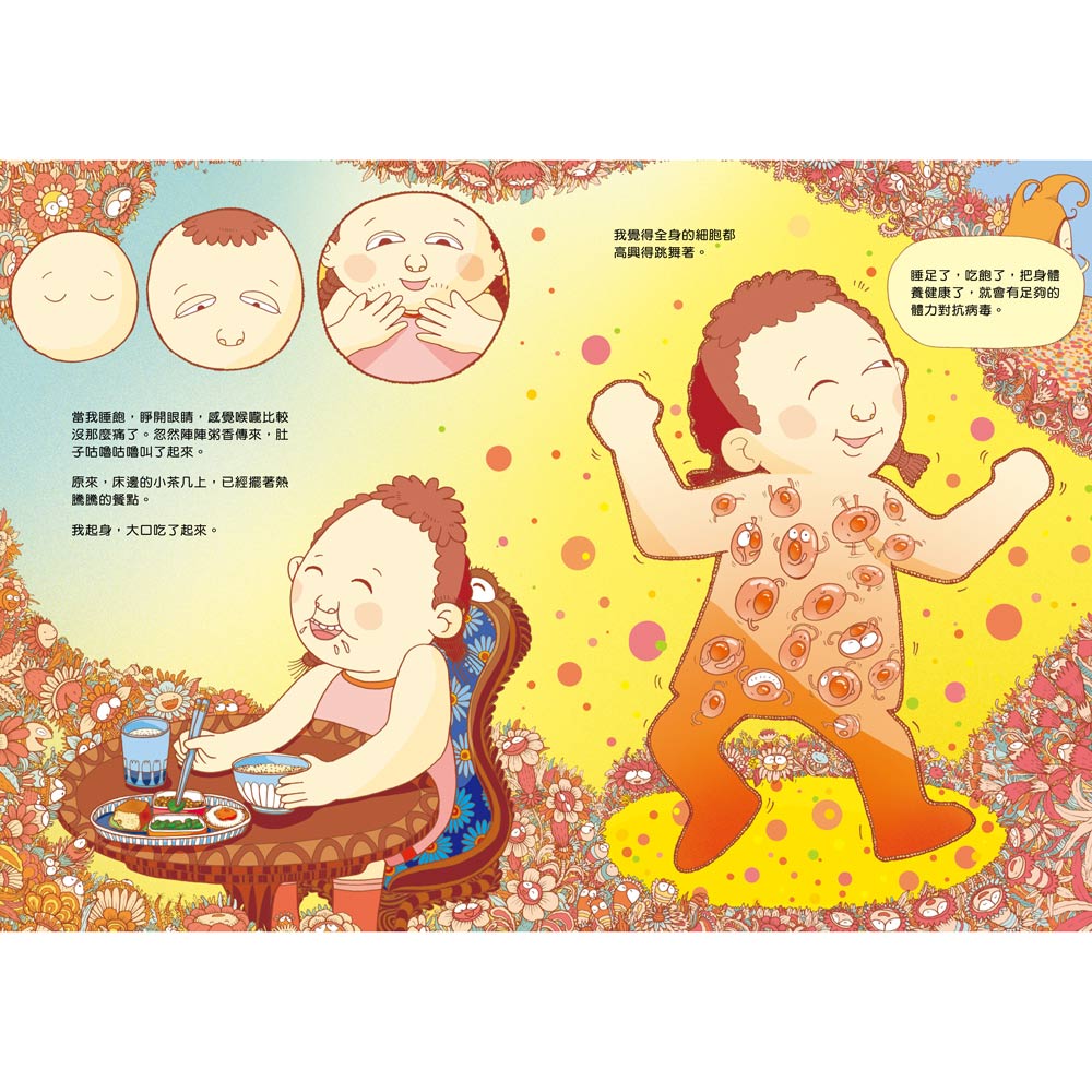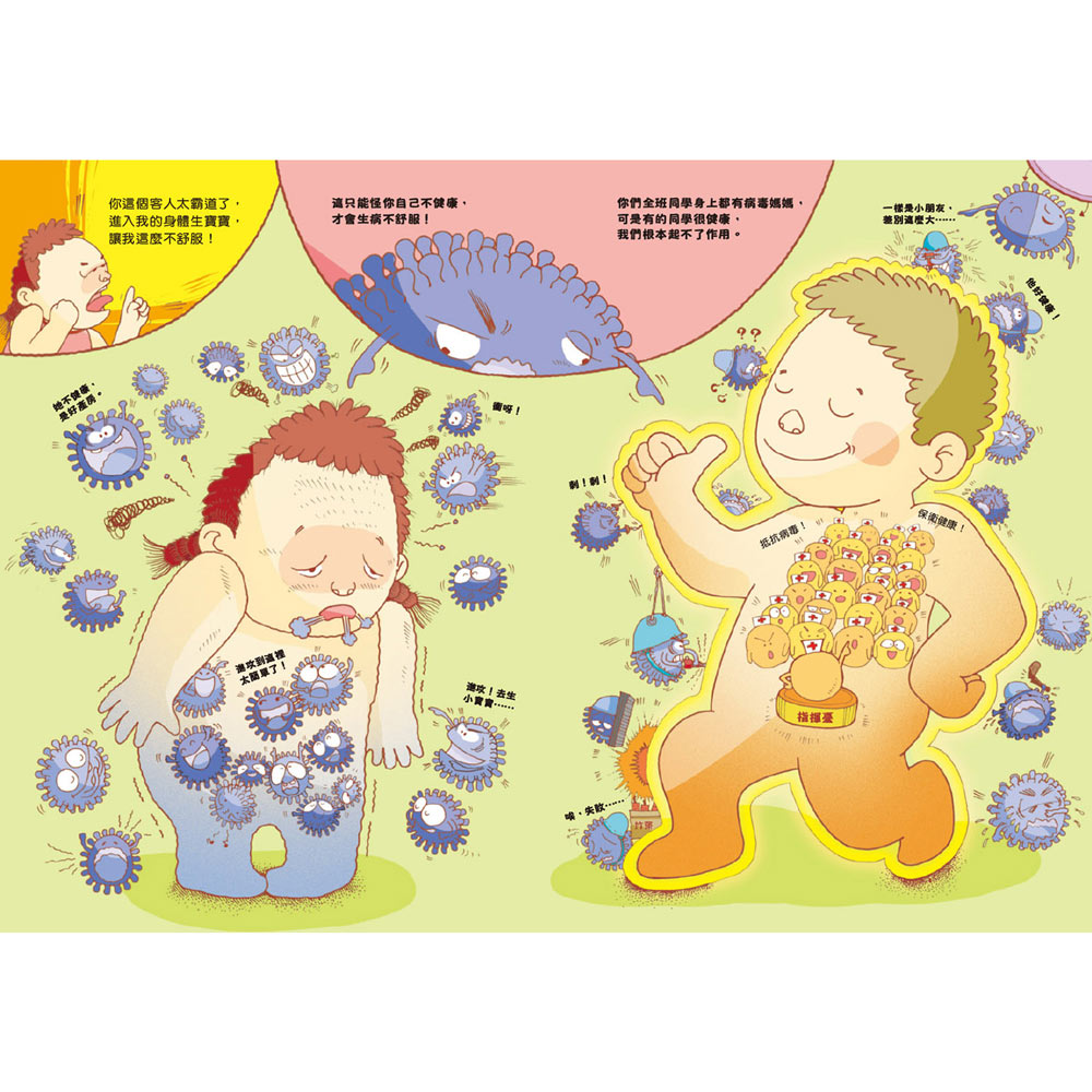 以漫畫式圖文呈現故事,孩子可輕鬆連結自己的生活習慣,認識流感的種類、特性,學習如何養成良好的衛生習慣以及保健方法。