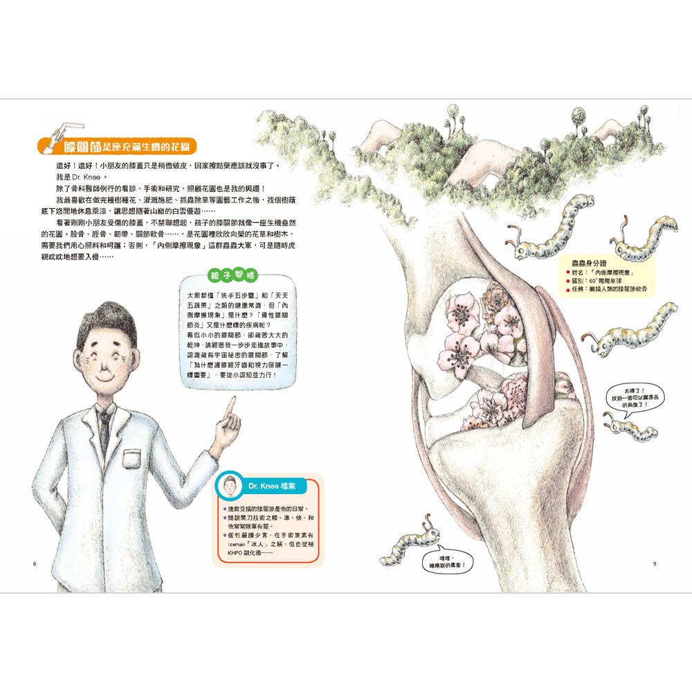大家都懂「洗手五步驟」和「天天五蔬果」之類的健康常識,但「內側摩擦現象」是什麼?「骨性膝關節炎」又是什麼樣的疾病呢?看似小小的膝關節,又藏著什麼樣大大的乾坤呢?請跟著Dr. Knee一步步走進故事吧!不但會認識藏有宇宙祕密的膝關節,更能了解「為什麼護膝跟牙齒和視力保健一樣重要」,要從小認知並力行。