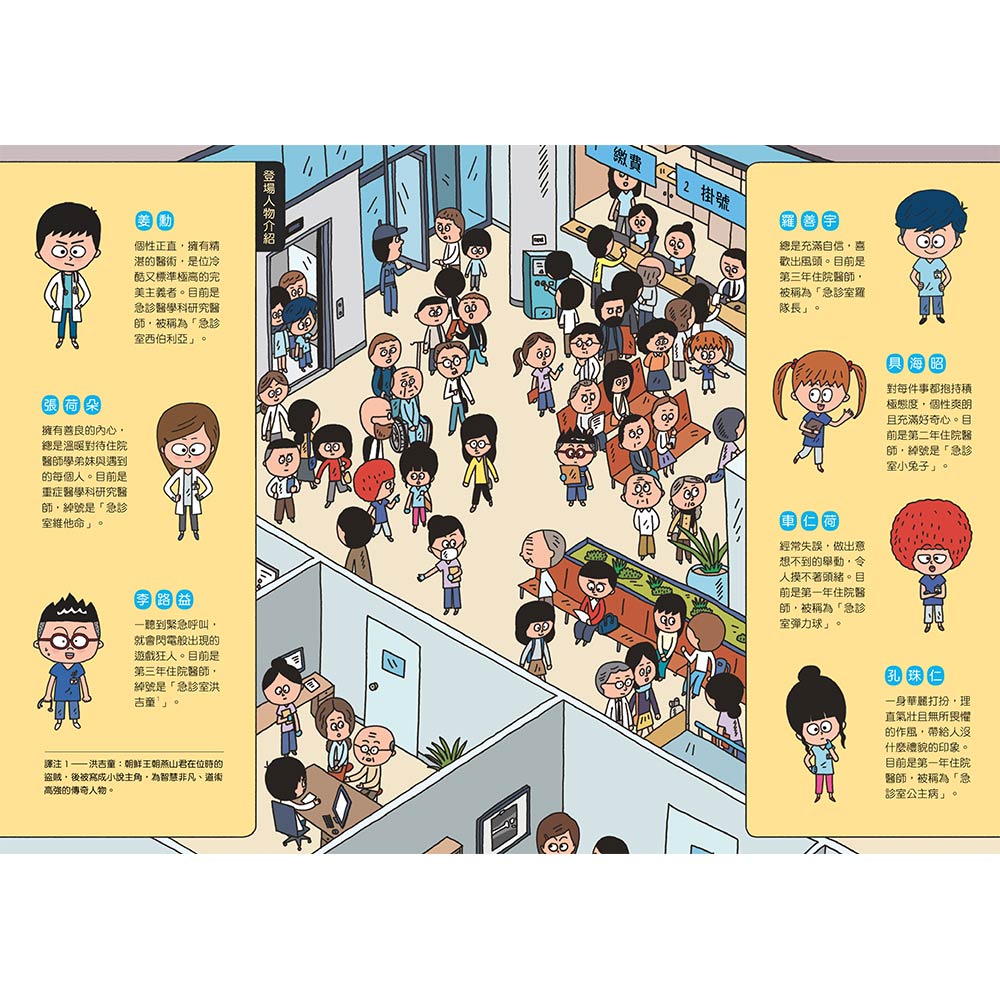 將急診室日常搬到書本之中,從驚險緊張的急救場景、觸動人心的醫病互動到青澀可愛的感情故事,劇情豐富且人物設定立體飽滿,呈現如韓劇般有笑有淚的醫院職人故事,既有知識深度亦不乏趣味性。