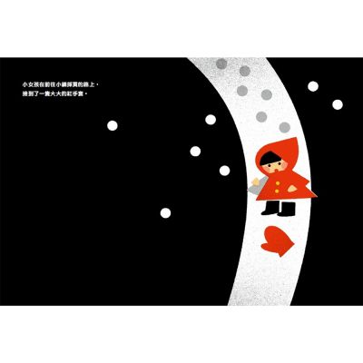 在雪花飄飛的耶誕夜裡,小女孩在前往小鎮採買的路上撿到了一隻大大的紅手套。
